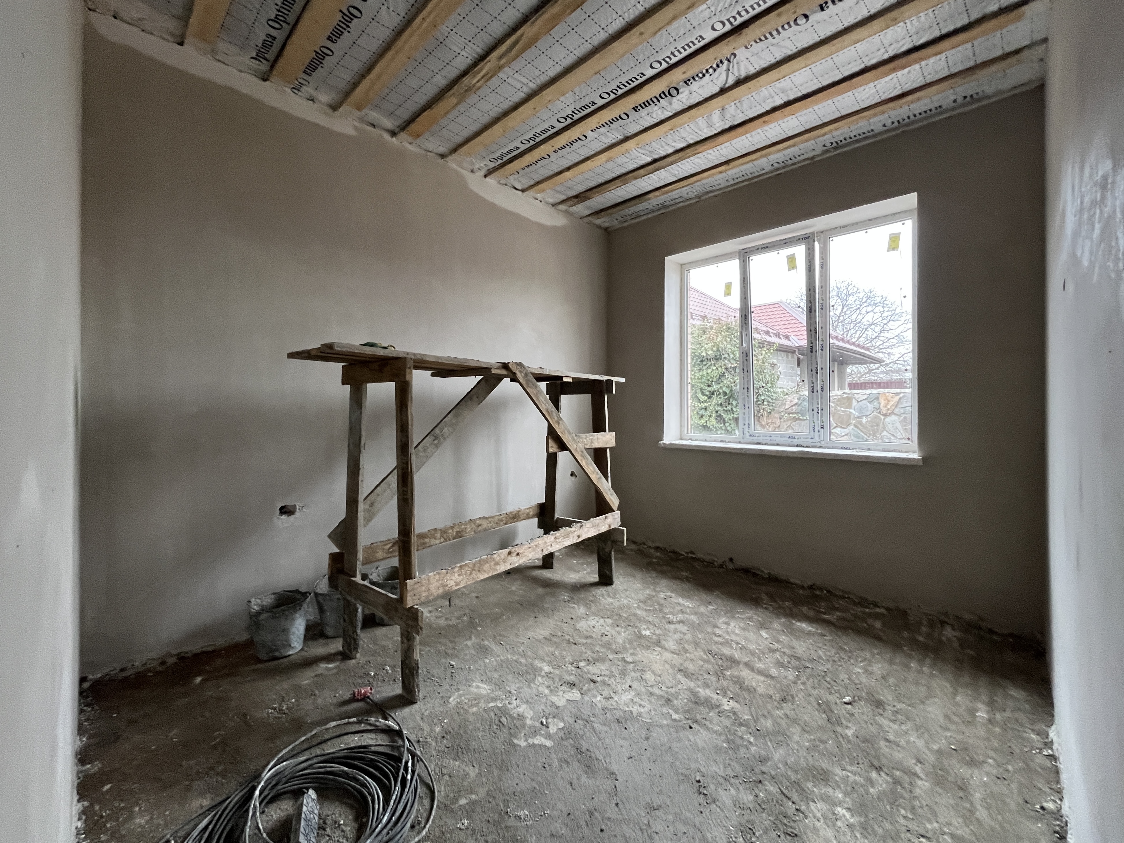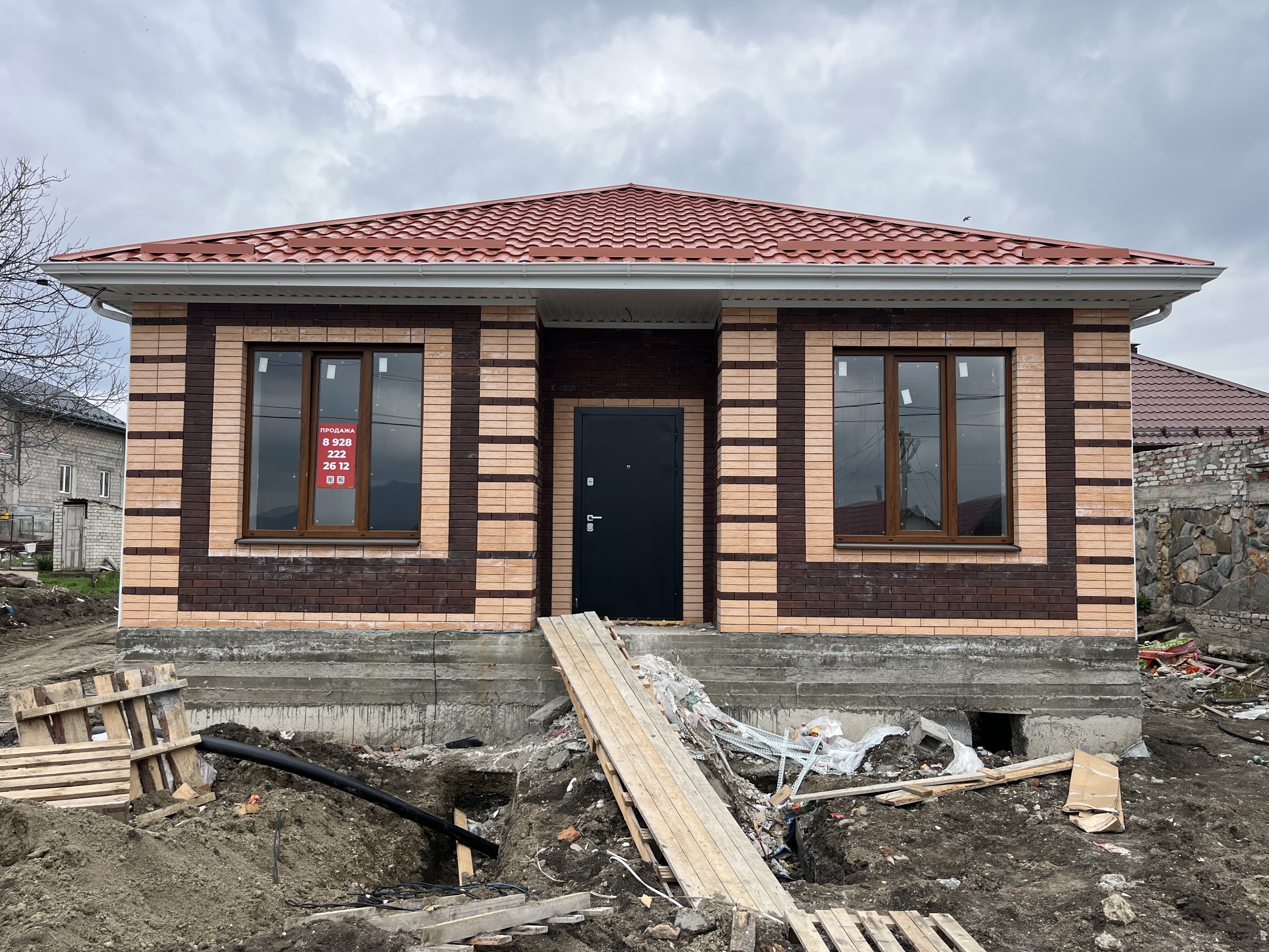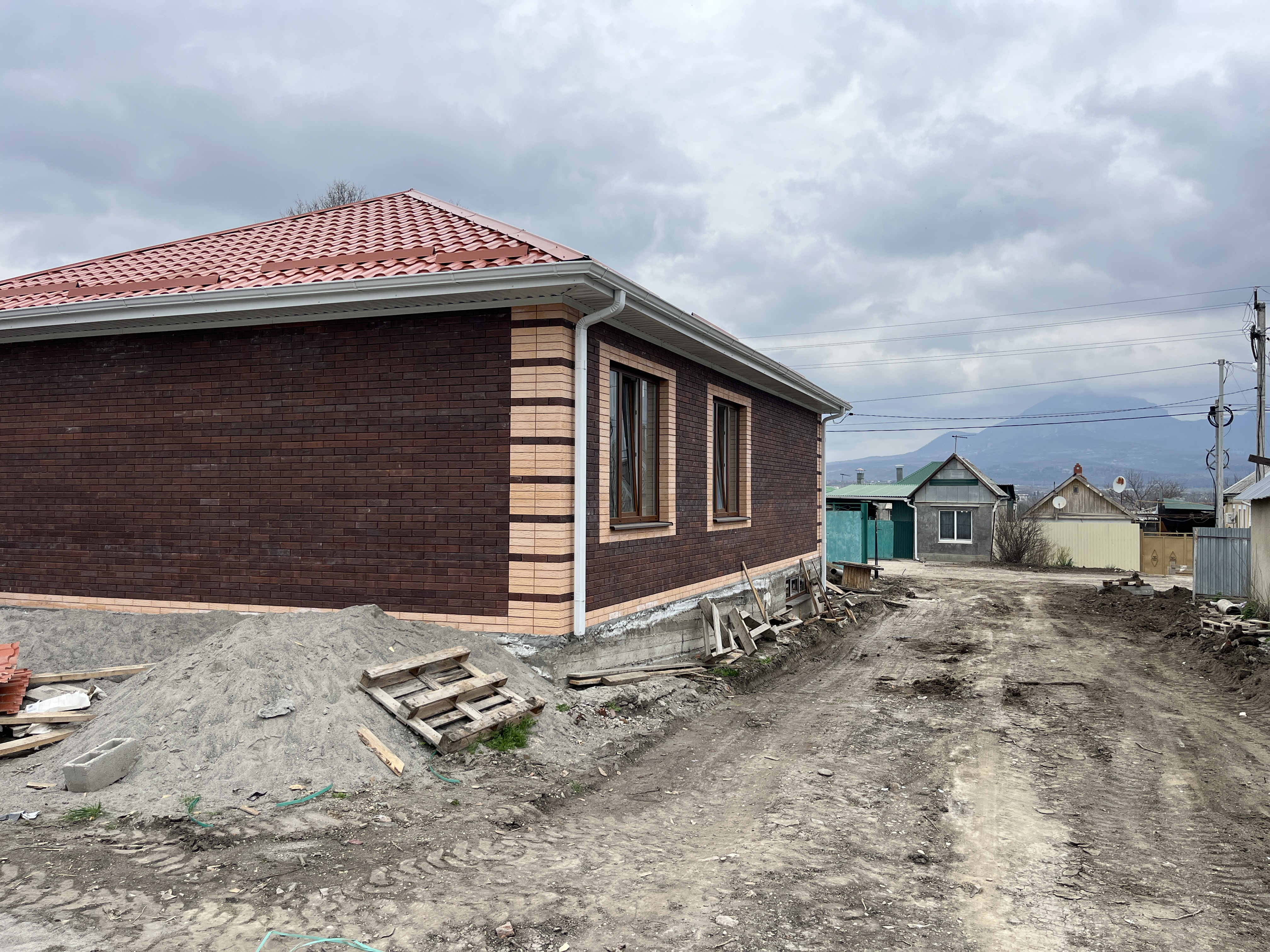 В стоимость дома входит предчистовая отделка, отопление, радиаторы, котел, стяжка внутри дома. Забор по периметру участка и ворота.