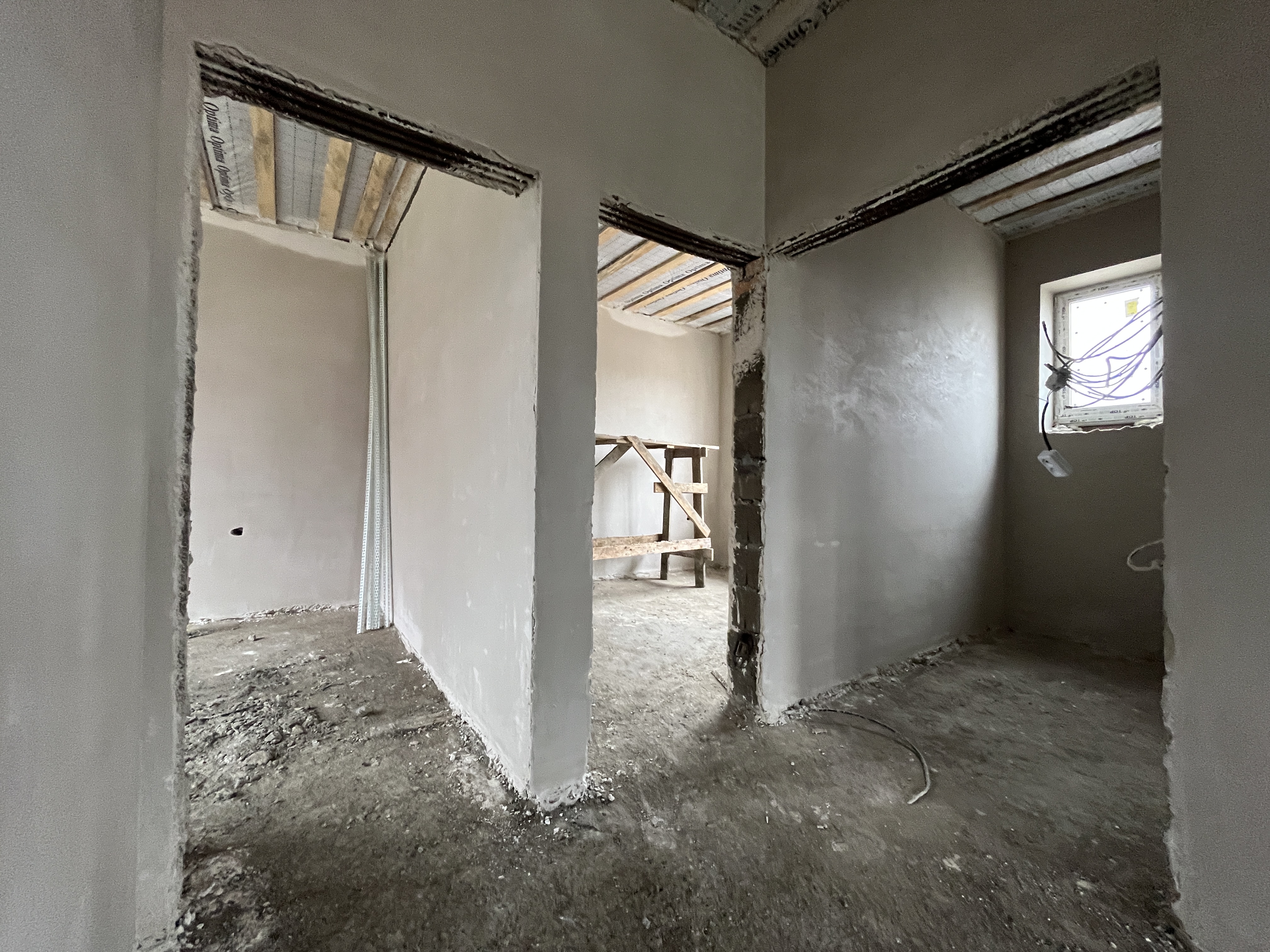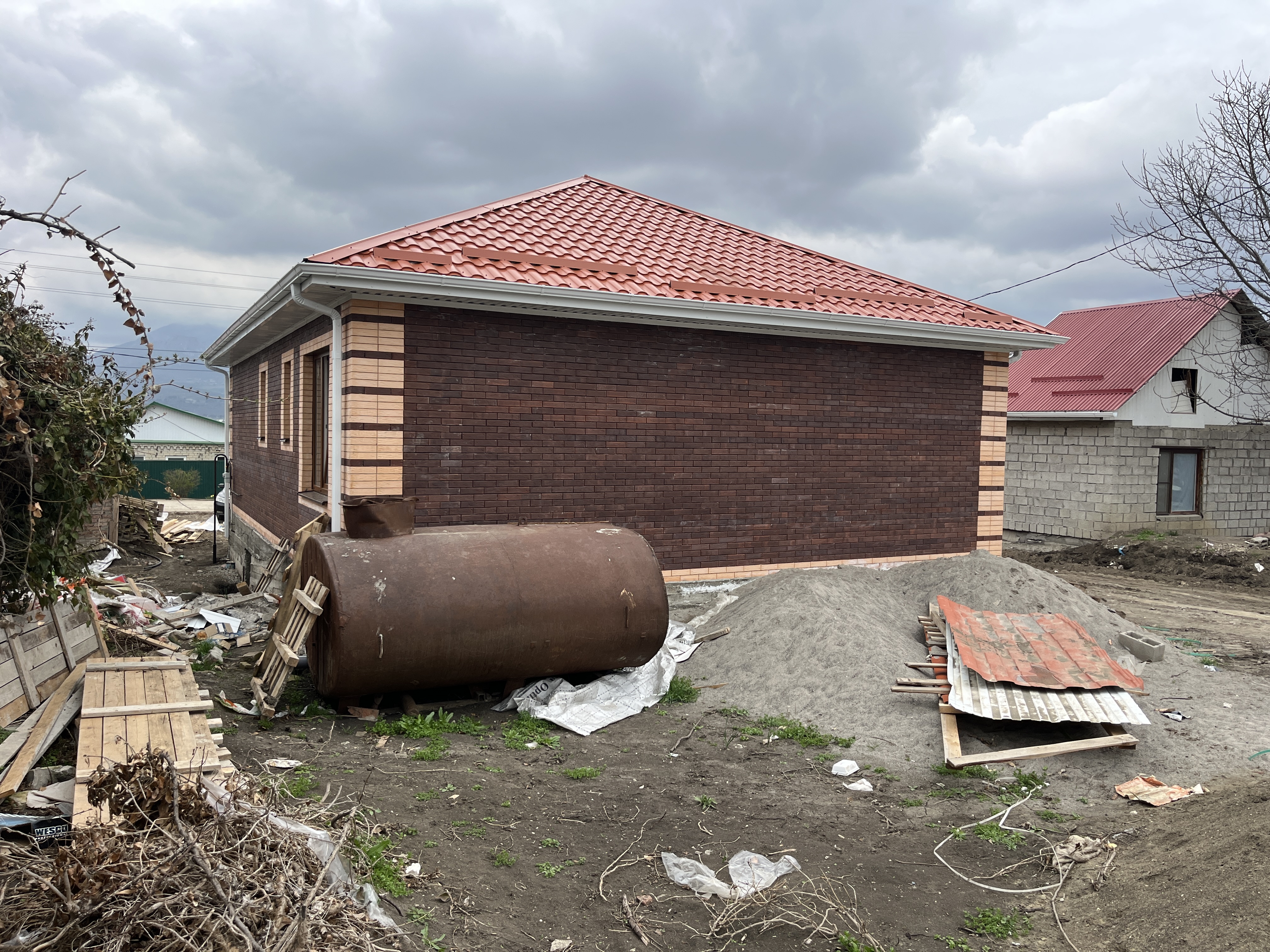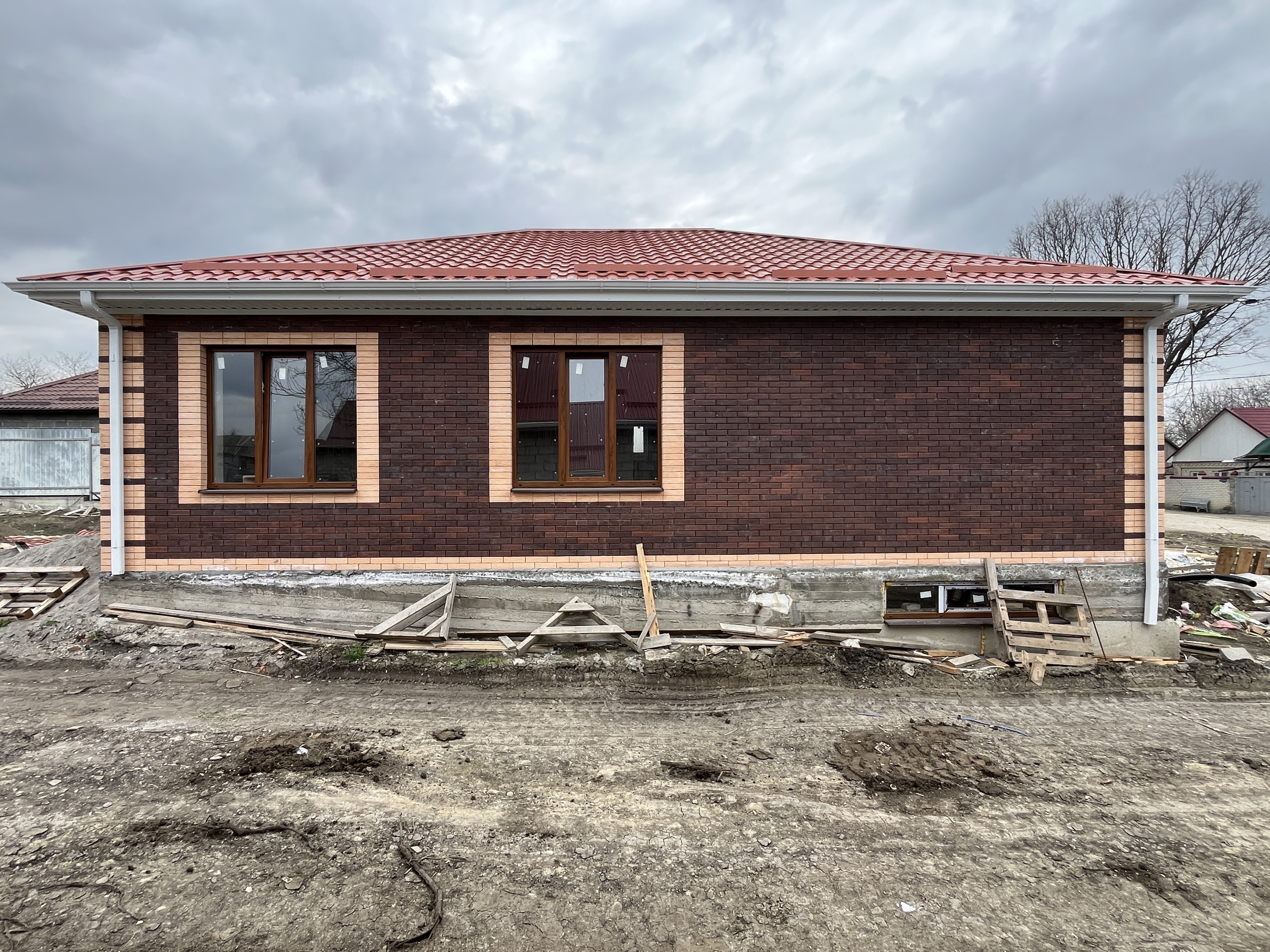 В стоимость дома входит предчистовая отделка, отопление, радиаторы, котел, стяжка внутри дома. Забор по периметру участка и ворота.