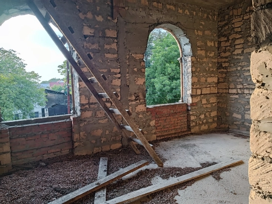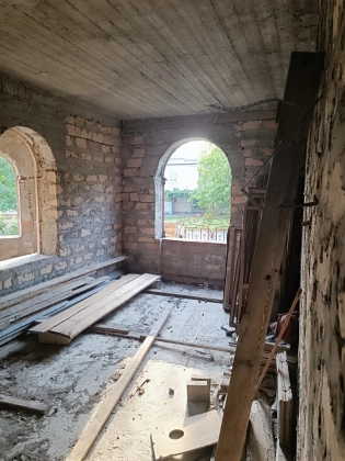 2 этажа, 400 м2, земельный участок 644 м2, без отделки, материал стен - туф