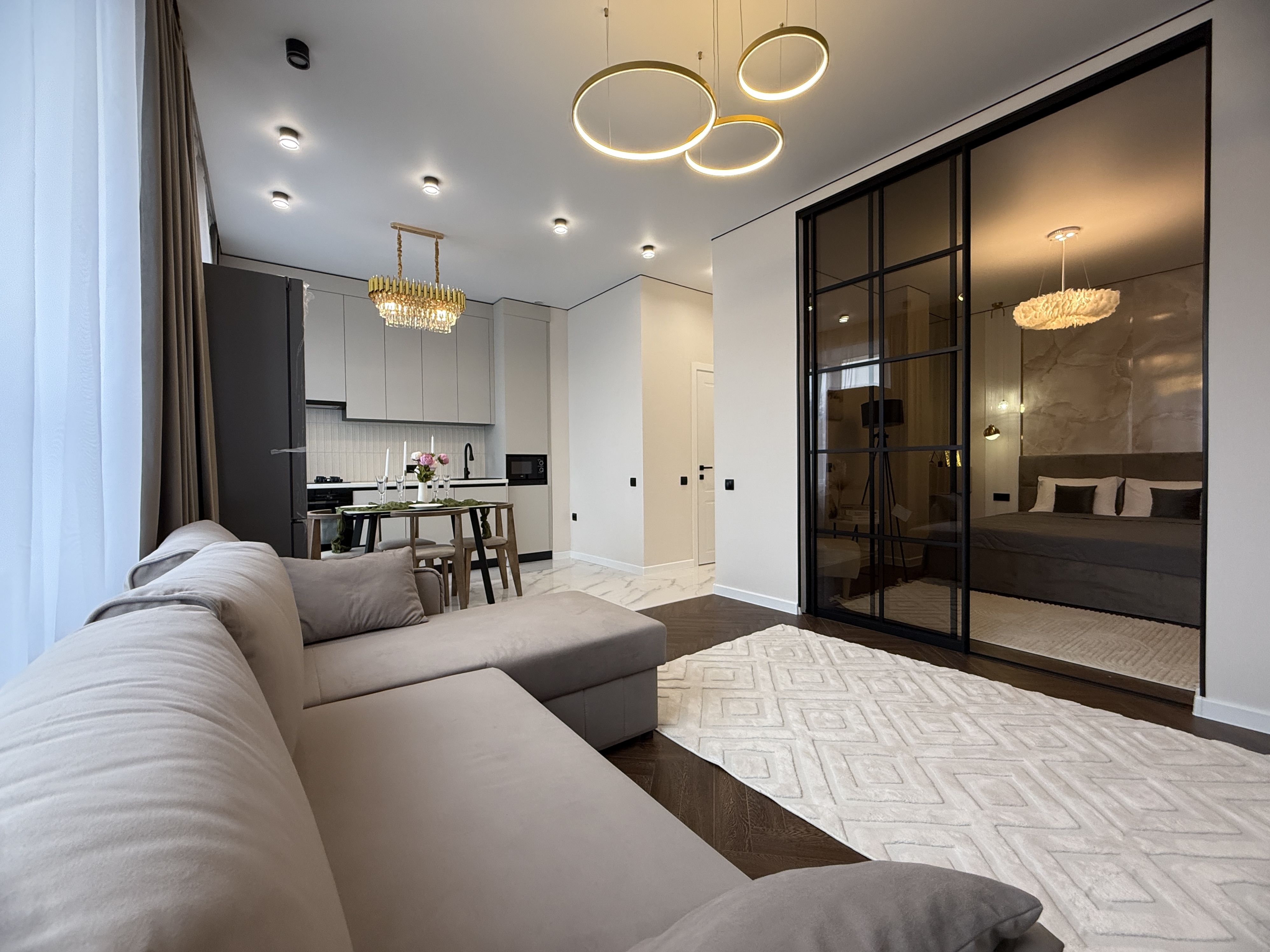 Внутри выполнен дизайнерский ремонт, в квартире остается вся мебель и техника