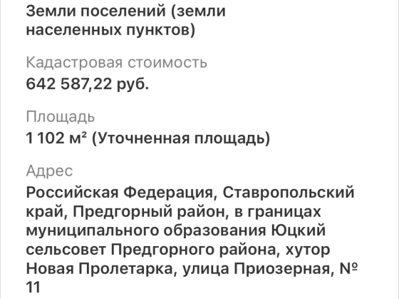 | Тип недвижимости (Гипернн) | Земля под индивидуальное строительство |