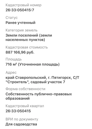 | Кадастровый номер участка | 26:33:050415:7 |